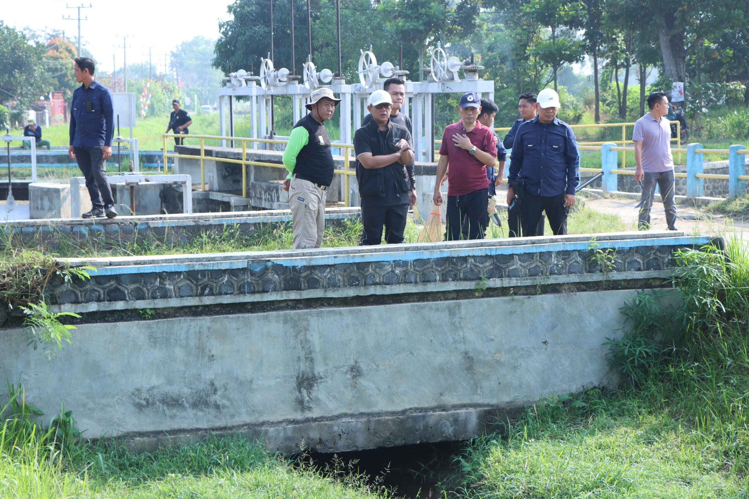 Dalam kesempatan itu, Bupati Ardito Wijaya tampak mengendarai sepeda motor menyusuri sepanjang saluran irigasi guna meninjau langsung kondisi saluran dan proses pembersihan yang sedang berlangsung.