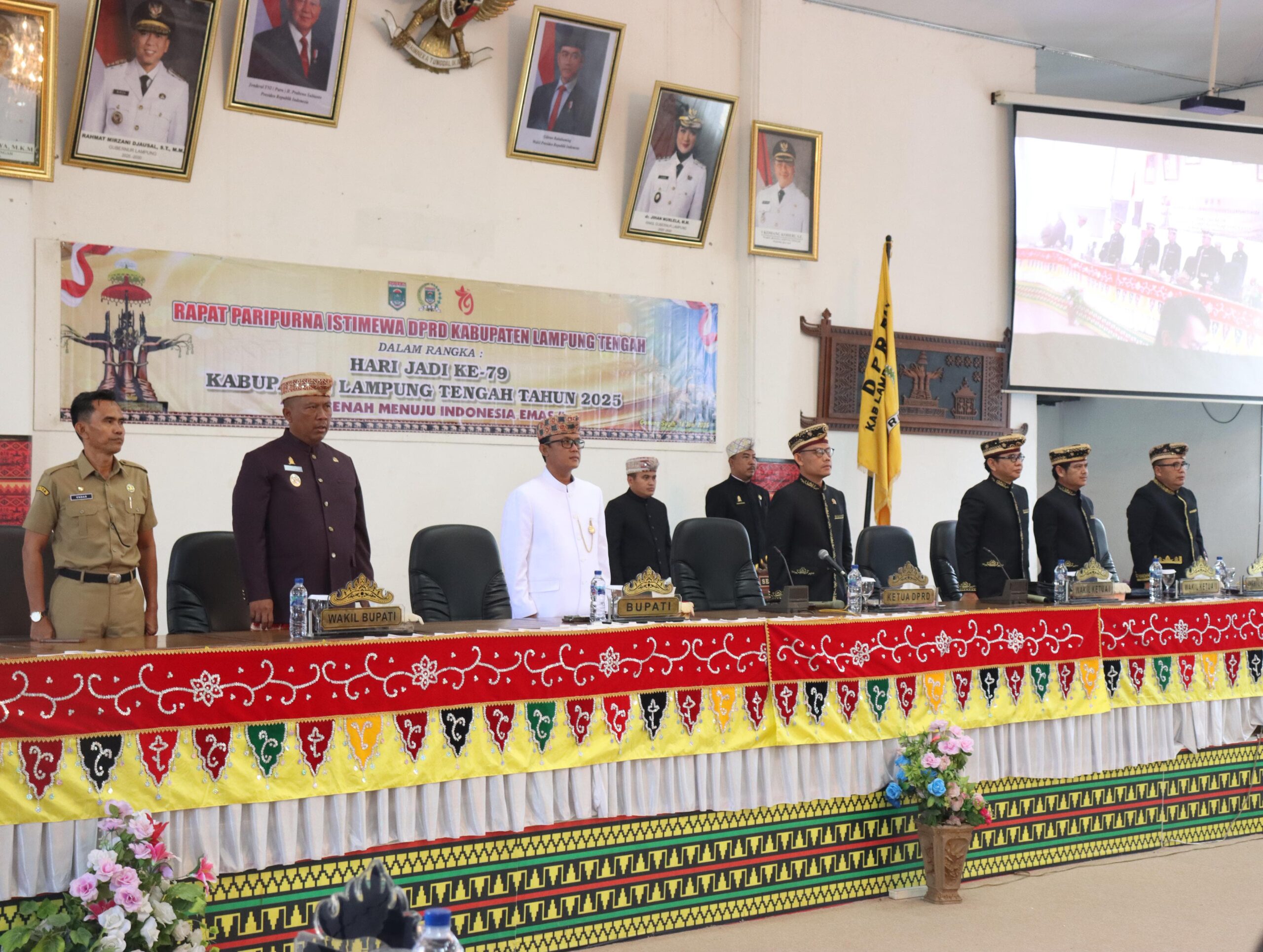 Rapat yang dipimpin Ketua DPRD Febriyantoni, didampingi para pimpinan dan Sekretaris DPRD itu dihadiri oleh jajaran Forkopimda Lampung Tengah, tokoh masyarakat, pimpinan Perangkat Daerah dilingkungan Pemkab Lampung Tengah, serta tamu undangan lainnya.