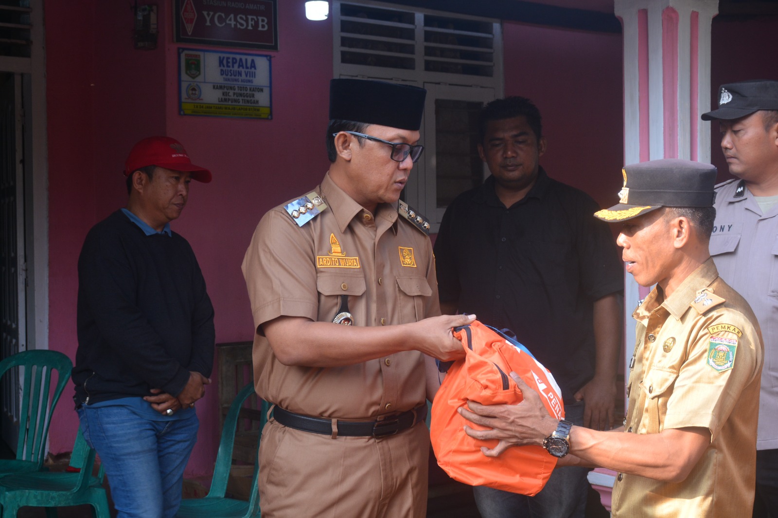 Bupati Lampung Tengah Ardito Wijaya Serahkan Bantuan Untuk Warga Terdampak Puting Beliung Dipunggur