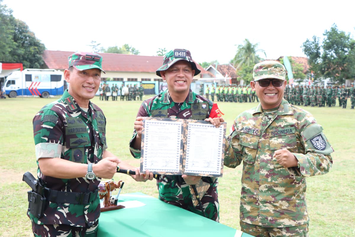 Lampung Tengah – (KIM) – Bupati Lampung Tengah, Ardito Wijaya, bersama Wakil Bupati I Komang Koheri mendampingi Komandan Korem 043/Garuda Hitam, Brigjen TNI Haryantana, dalam acara penutupan TNI Manunggal Membangun Desa (TMMD) ke-125 yang berlangsung di Kampung Sukanegara, Kecamatan Bangun Rejo, pada Kamis (21/8/2025).