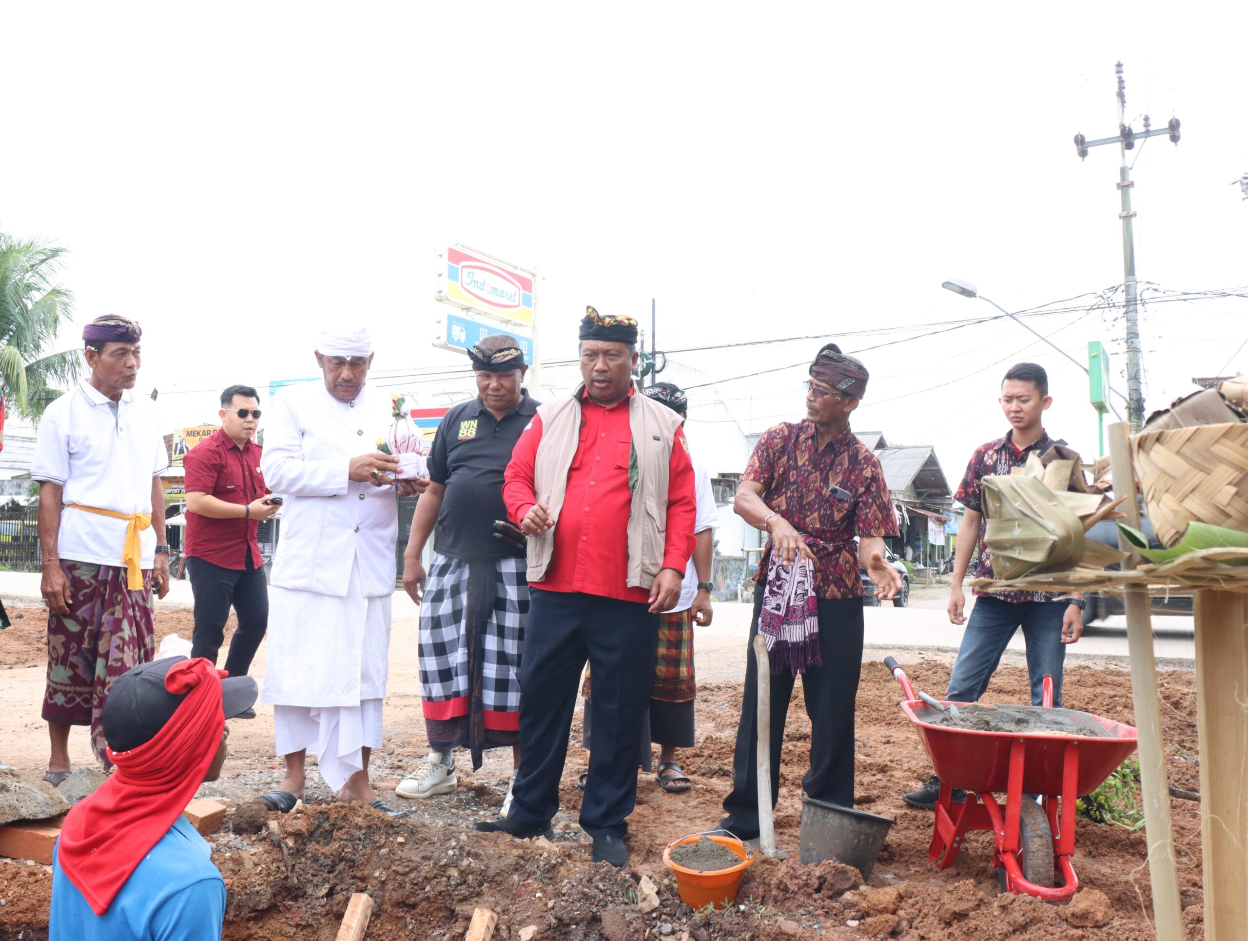 Wakil Bupati I Komang Koheri  menghadiri peletakan batu pertama pembangunan gapura Kampung Rama Dewa Kecamatan Seputih Raman.