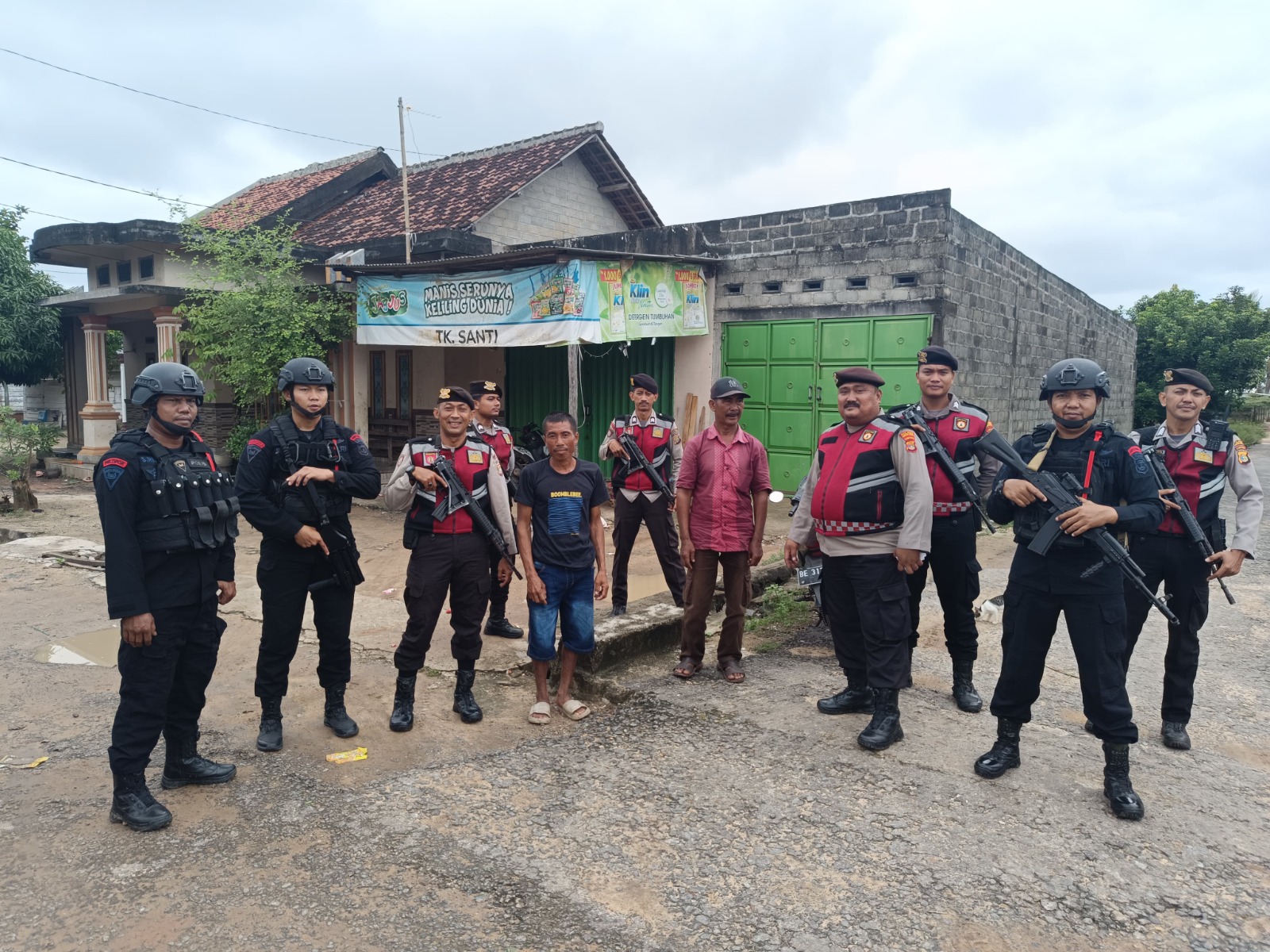 Jaga Kondusifitas Wilayah, Polres Lampung Tengah Bersama Sat Brimob Polda Lampung Gelar Patroli Gabungan