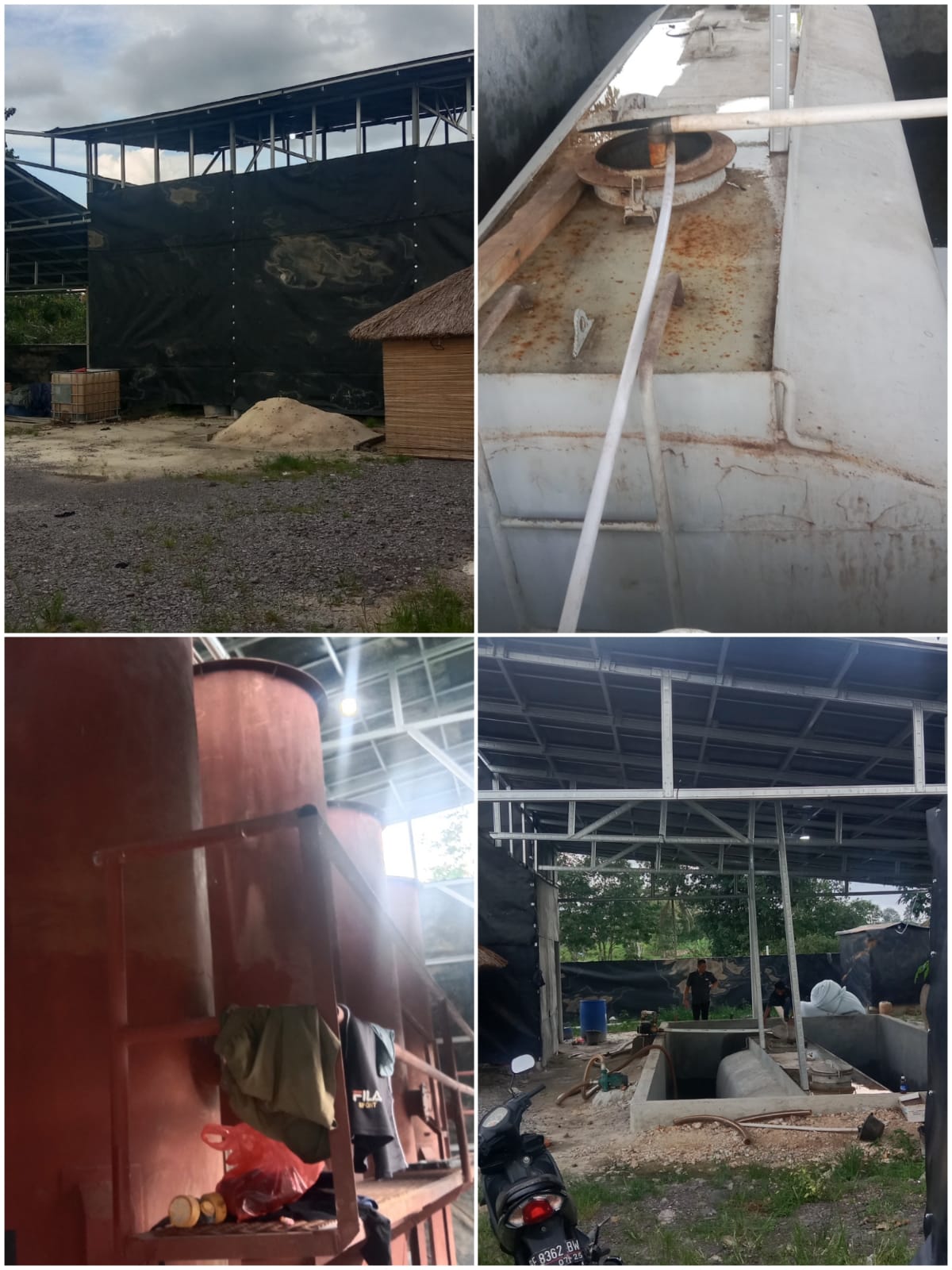 Pantauan langsung dilokasi gudang tampak tidak ada kegiatan hanya ada 2 tangki berukuran besar yang diletakkan dalam galian tanah, dan 4 tengki berukuran sedang warna merah didalam gudang yang terkesan tempat pengelolaan minyak mentah/cong.