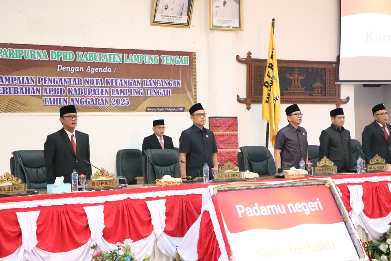 Lampung Tengah – (KIM) – Bupati Lampung Tengah, Ardito Wijaya, menghadiri Rapat Paripurna DPRD Kabupaten Lampung Tengah dalam rangka penyampaian pengantar Nota Keuangan Rancangan Perubahan Anggaran Pendapatan dan Belanja Daerah (APBD) Tahun Anggaran 2025. Rapat tersebut berlangsung di Ruang Rapat Paripurna DPRD Kabupaten Lampung Tengah pada Jumat (15/8/2025).