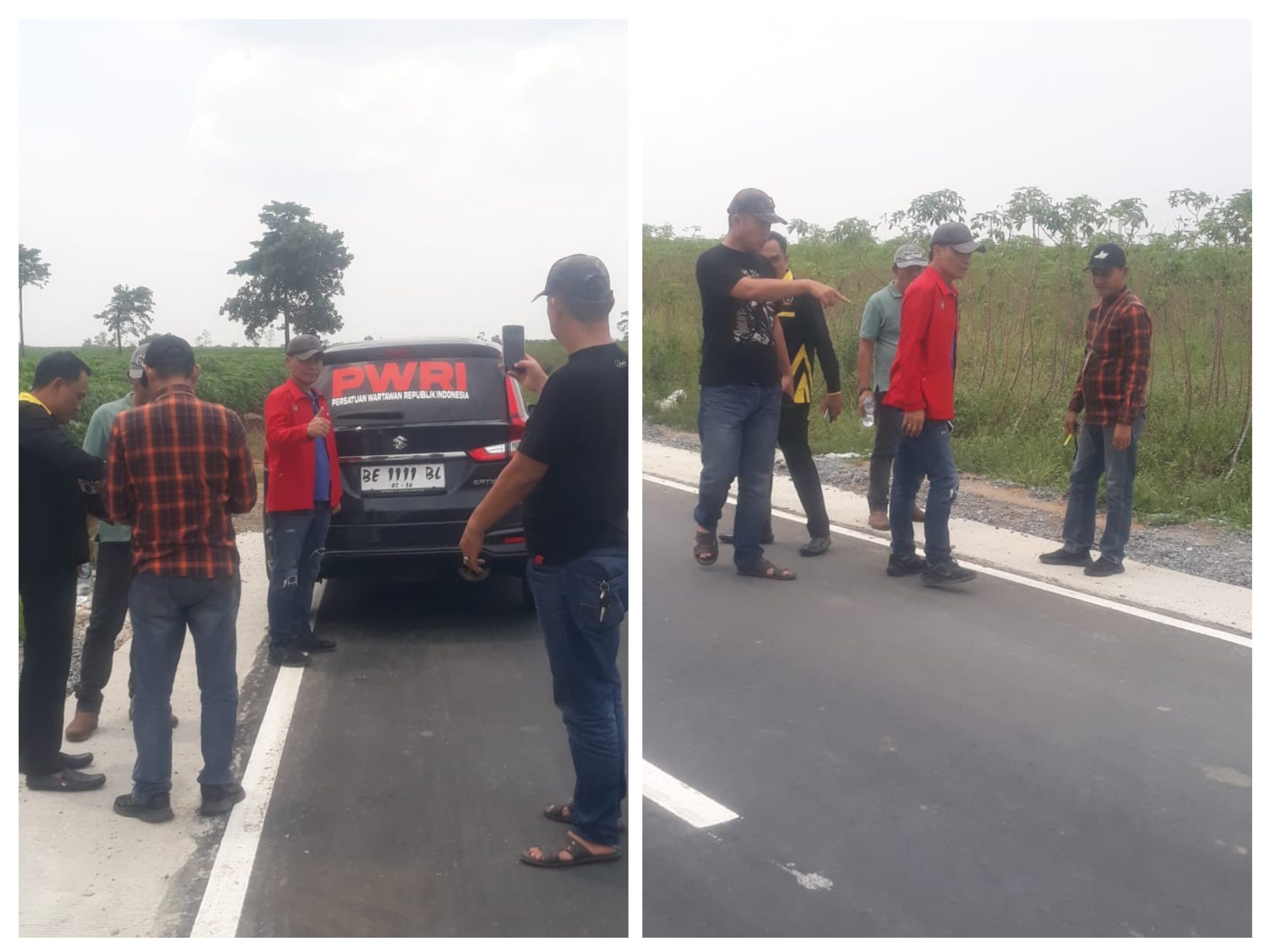 Pekerjaan tersebut telah di cek kelokasi oleh Timsus PWRI Lamteng berdasar informasi warga masyarakat setempat didapat kondisi pekerjaan pengaspalan lebar 560cm dan pengecoran tepi jalan aspal kanan kiri masing masing lebar 70cm dan tebal 9cm – 10cm. Sebelum PHO proyek (Provisional Hand Over) diminta untuk dilakukan pemeriksaan secara detail dan jika ditemukan tidak sesuai spek harus di lakukan penahanan pembayaran dan pembongkaran untuk menyesuaikan spek.