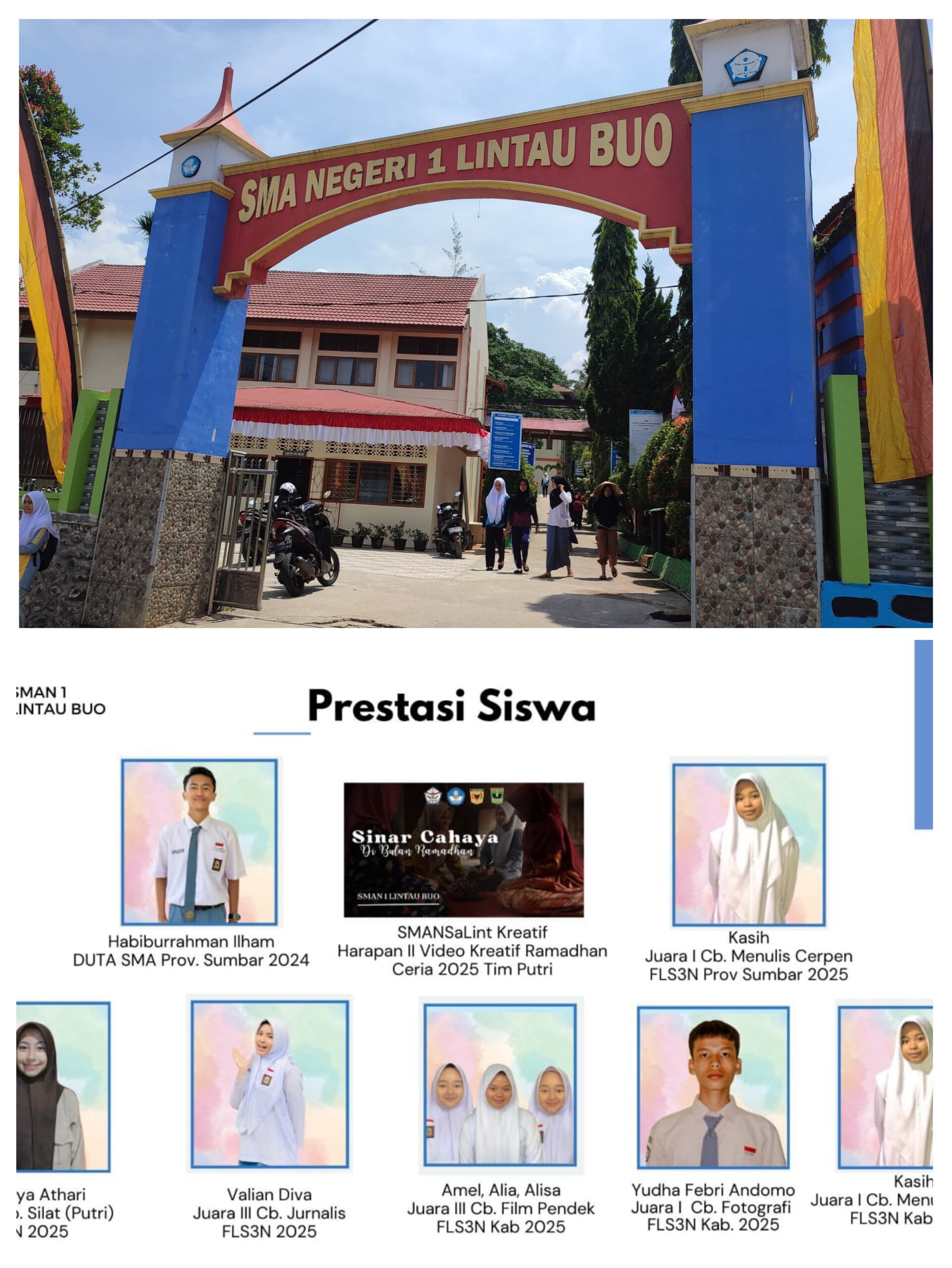 SMAN 1 LINTAU BUO Dikenal Sebagai Salah Satu Sekolah Yang Selalu Meraih Juara Di Ajang Perlombaan Tingkat Provinsi Maupun Tingkat Nasional, Keberhasilan Tersebut Tidak Lepas Dari Keberhasilan Kepala Sekolah Dan Dewan Guru Yang Berhasil Mendidik Siswa/Siswi Menjadi Murid Yang Berprestasi Di Ajang Akademik Maupun Non Akademik.