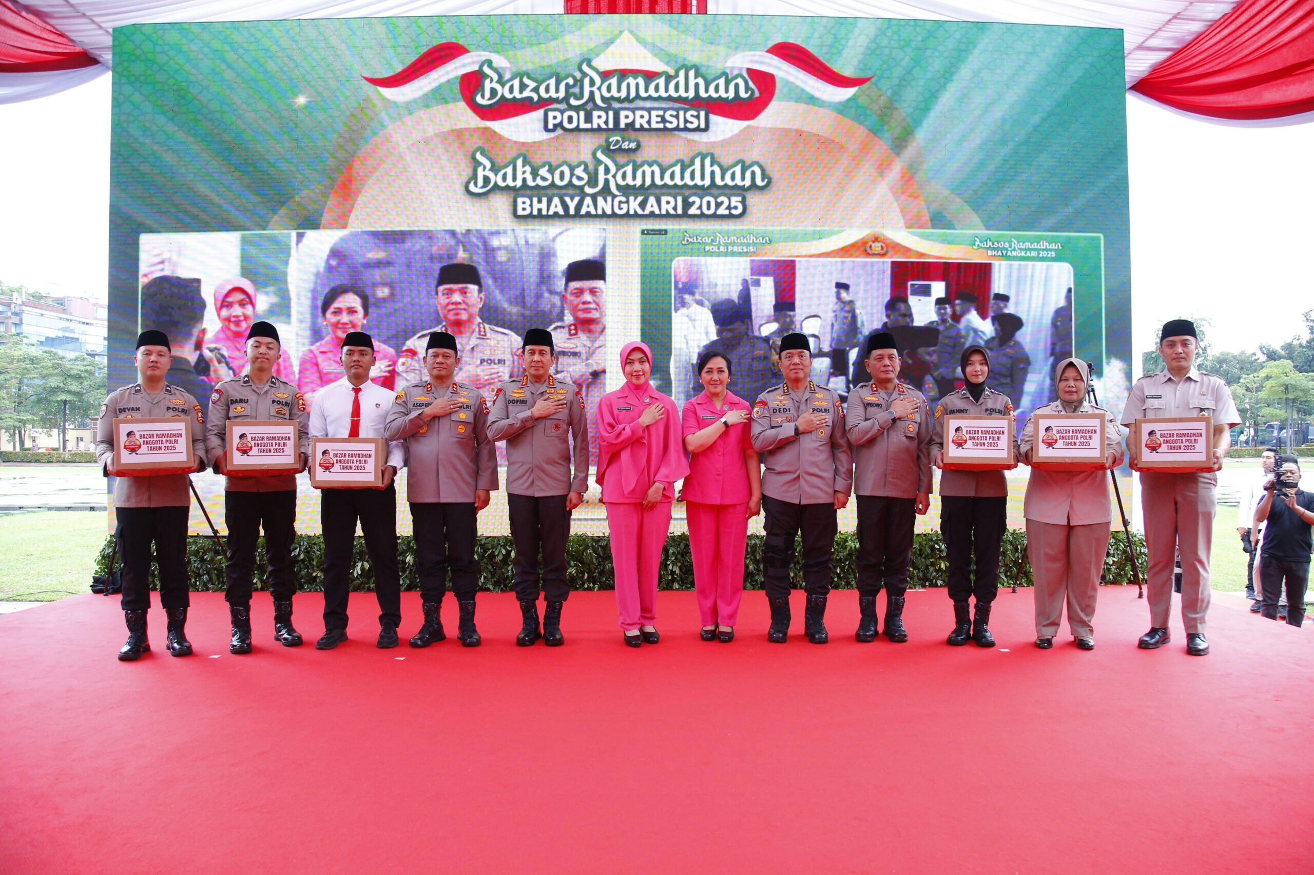 Dalam acara ini, Polri juga membagikan 3 ribu paket sembako gratis kepada driver ojek online di empat lokasi berbeda. Adapun Baksos Ramadan Bhayangkari 2025 membagikan paket sembako gratis ke Mako Korbrimob Polri 750 paket, Lapangan Bhayangkara 750 paket, Lemdiklat Polri 750 paket dan Mako Korpolairud 750 paket.
