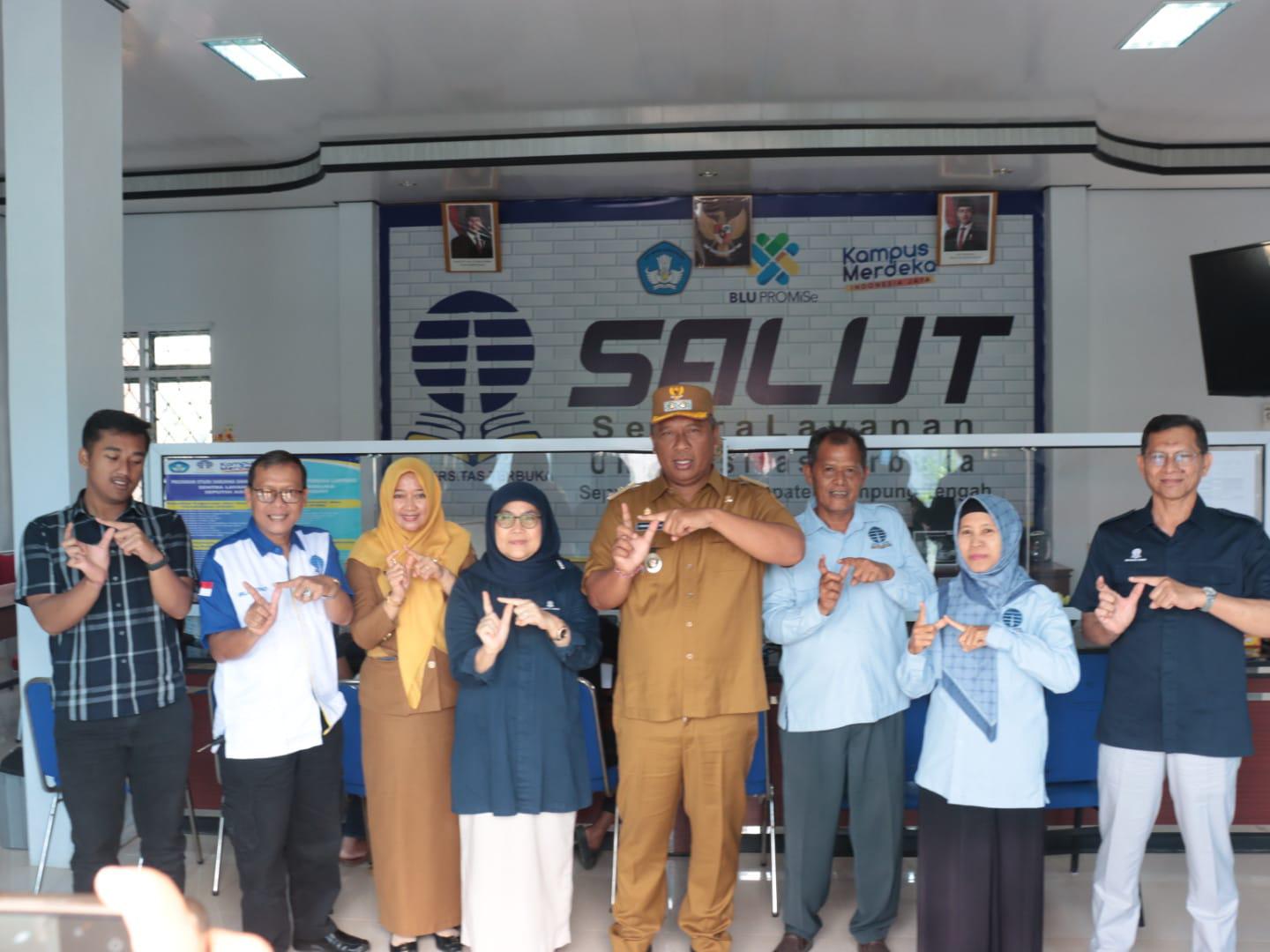Wabub Lampung Tengah di Dampingin Plt. Asisten Bidang Pemerintahan dan Kesejahteraan Rakyat (Kesra), Dr. Candra Puasati, S.Pd., M.Pd., Direktur UT (Universitas Terbuka) Lampung adalah Dra. Sri Ismulyaty, M.Si. Pimpinan SALUT Universitas Terbuka Seputih Agung Imam Mustofa, M.Pd.I. Dan tamu undangan.